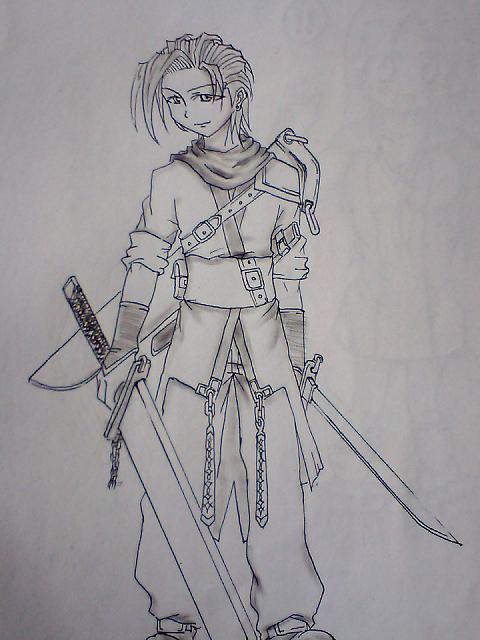 一体何をテーマにして描いたのかといえば剣士としか言いようのないものなのですが、まぁ、こう、異色の侍みたいな、アジアテイストな雰囲気を持った感じの剣士にしてみたかっただけです。アジアの文化を取り入れるという外国の各業界のデザイナーさんも少なくない筈ですしね。